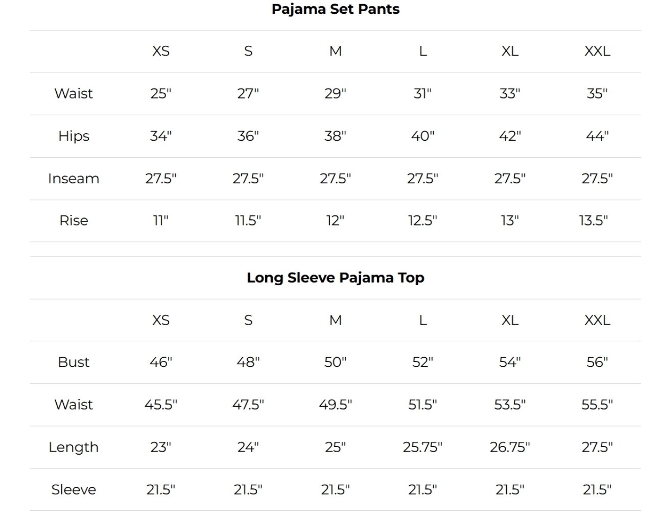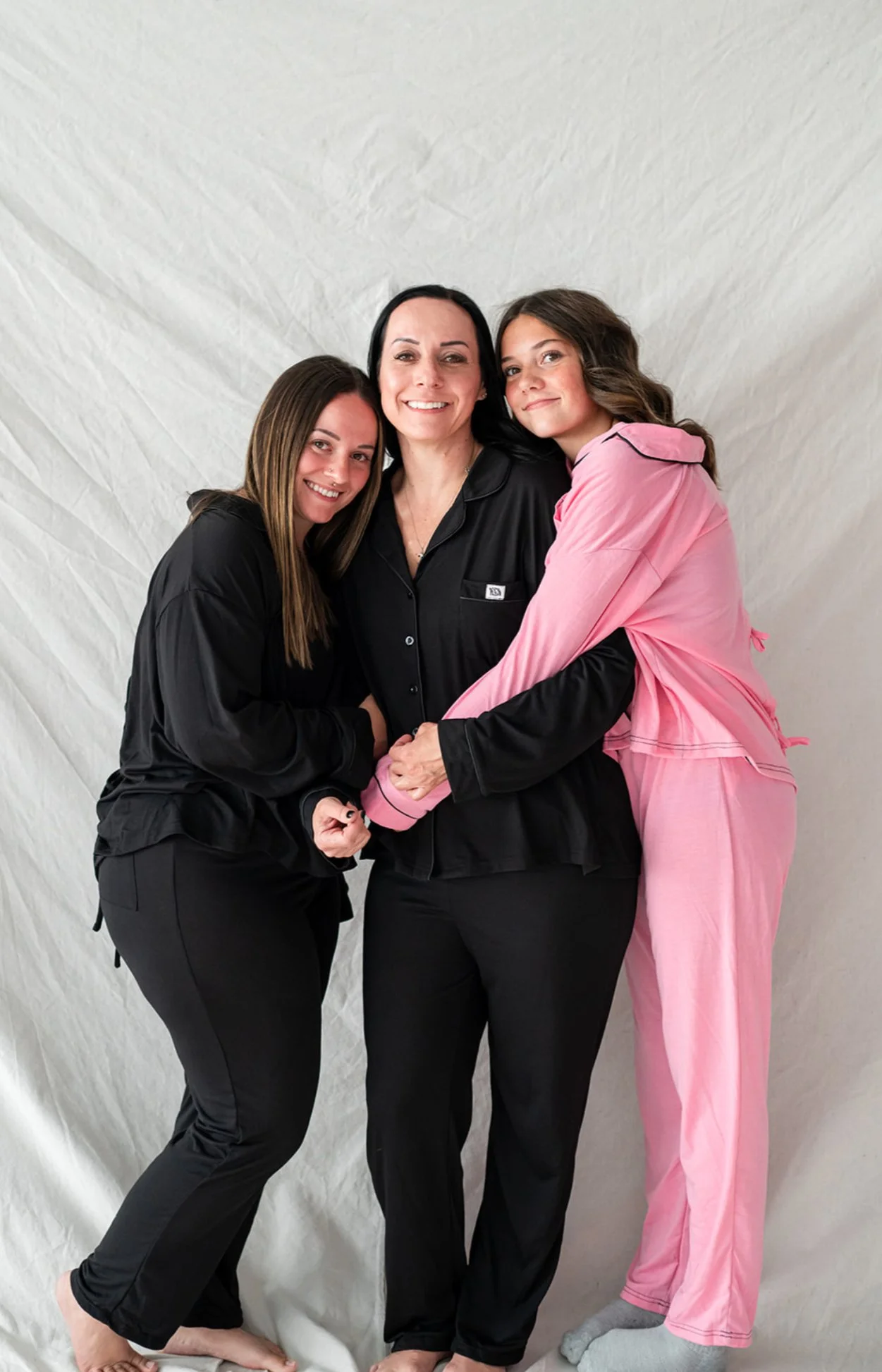 Pink Pajama Pants $27.99 Black Pajama Pants $27.99 Pink Long Sleeve Pajama Top $44.99 Black Long Sleeve Pajama Top $44.99